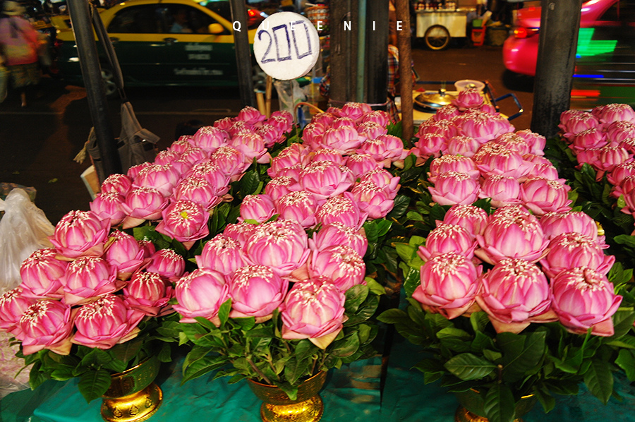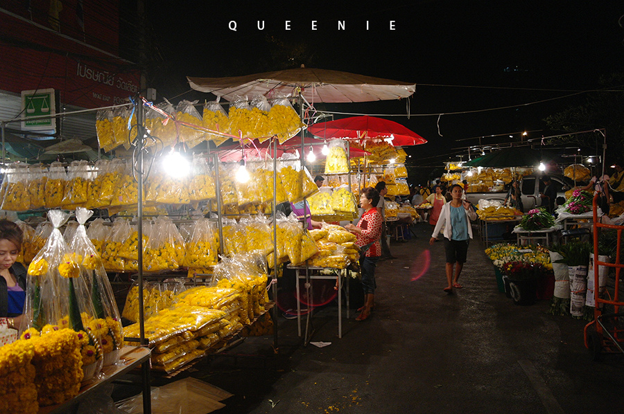 有天晚上為了排解考試的壓力,大晚上一個人從我的學校跑去帕空花市(Pak Khlong Talat )買了些花以及吃宵夜。