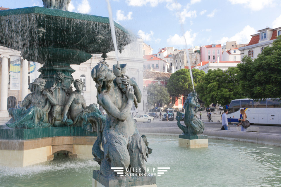 最後是聖胡斯塔升降機(Elevador de Santa Justa)周邊的佩德羅四世廣場(羅西歐廣場)Praça Dom Pedro IV(Rossio),這廣場被譽為里斯本的心臟,它的設計仿造了巴黎協和廣場,並在廣場鋪設了代表葡萄牙特色的葡式碎石路,中央的雕像是國王佩德羅四世的雕像,有趣的是雕像邊上的噴泉底部是有四個女性雕像分別代表了正義、智慧、力量、節制,這是佩德羅四世國王對自己的評價喔!